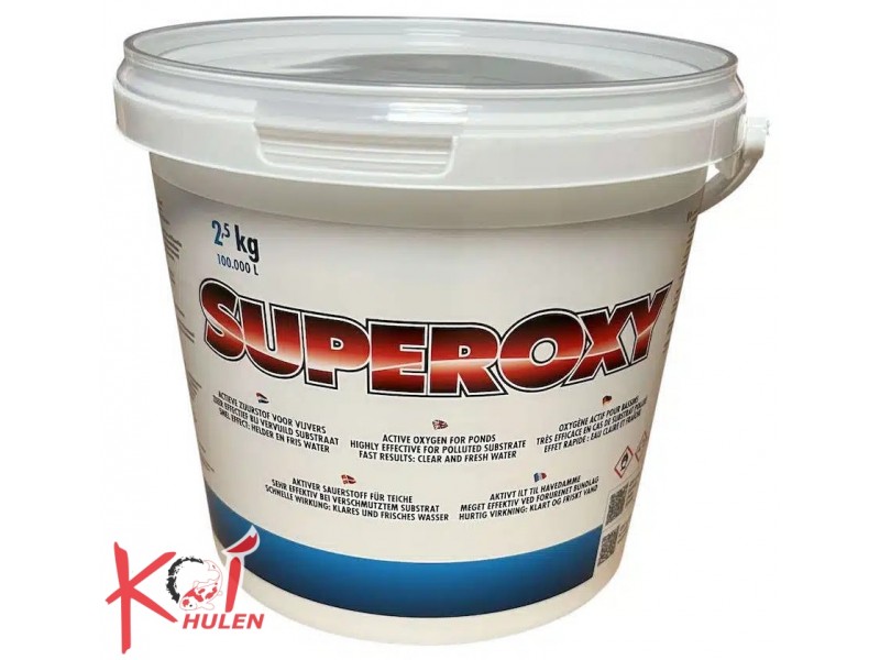 Den aktive ilt i SuperOxy giver et iltboost og hjælper med at løsne ophobet slam. Reducerer risikoen for anaerobe områder, ynglepladser for svampe og skadelige bakterier. Understøtter klart og frisk vand i dammen. Forbedrer iltfattige zoner såsom forurenet lava og plantefiltre. Reducerer organiske aflejringer på bund og vægge. Fjerner misfarvning efter kaliumpermanganatbehandling. Sikker for fisk og planter (ved brug i den anbefalede dosis).