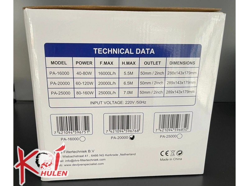 Pumpe, digital styring, smudskurv, slangemundstykke 2 x 45/50 mm og 2 x 60 mm, gummifødder, betjeningsvejledning