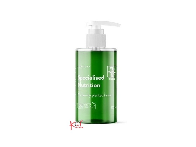 Specialised Nutrition doseres hver uge i forbindelse med vandskifte. En præcis dosering er gjort nem ved hjælp af pumpeflasken, hvor et tryk på pumpen doserer 2 ml gødning. Vi anbefaler 6 ml til 50 L vand om ugen, men det tilrådes at vurdere planternes behov. Specialised Nutrition indeholder udover mikronæringsstoffer alle de nødvendige makronæringsstoffer. Gødningen kan bruges i situationer, hvor hele planten viser næringsmangel. Bemærk, at såfremt der er begyndende algevækst, kan algevæksten forværres ved tilsætning af gødningen.