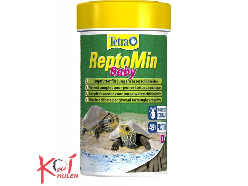 Tetra ReptoMin Baby er et afbalanceret og nærende fuldfoder til unge skildpadder. Det høje proteinindhold på 45% fremmer sund vækst, mens det optimale calcium-fosfor-forhold bidrager til en sund udvikling af knogler og skal hos unge dyr. Den specialudviklede foderformel reducerer ubehagelige lugte i akvariet og er lavet med naturlige ingredienser. De små ReptoMin Baby-foderpinde er specielt tilpasset unge skildpadders behov og spisevaner, hvilket gør det lettere at fodre dem. Den unikke opskrift, som indeholder naturlige ingredienser af høj kvalitet uden tilsatte farvestoffer og konserveringsmidler, fremmer sund vækst og et stærkt immunforsvar.